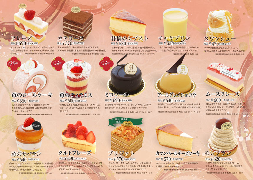 苺の可愛らしいケーキから、濃厚なショコラまで、ティータイムを彩るラインナップをご用意しました♪
